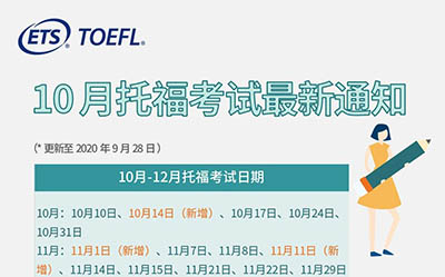 2020年10月托福考試新增考點信息,將有一大波考點開放2020-09-25