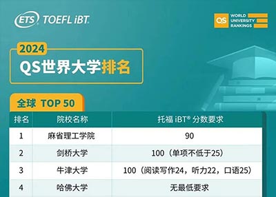 2024年QS世界大學(xué)排名TOP50院校雅思托福成績要求2023-07-11